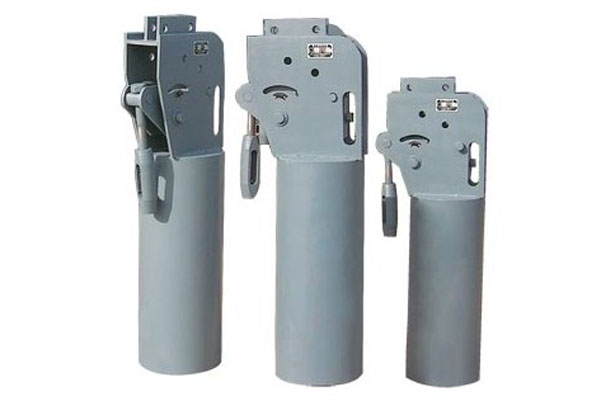 一種用于步進式加熱爐汽化冷卻裝置中步進機構(gòu)所使用的恒力彈簧吊架,特征是恒力彈簧組由一組受拉彈簧、一組受壓彈簧和彈簧支架組成,滾珠軸承機構(gòu)由滾珠軸承,中心軸,防塵罩和U型拉桿組成,吊板上部與上聯(lián)箱進行焊接,吊板下部安裝有滾珠軸承機構(gòu),滾珠軸承機構(gòu)通過調(diào)整螺絲、拉桿與恒力彈簧組上端連接,恒力彈簧組下端通過拉桿、調(diào)整螺絲與固定在管道上的管部吊耳連接。